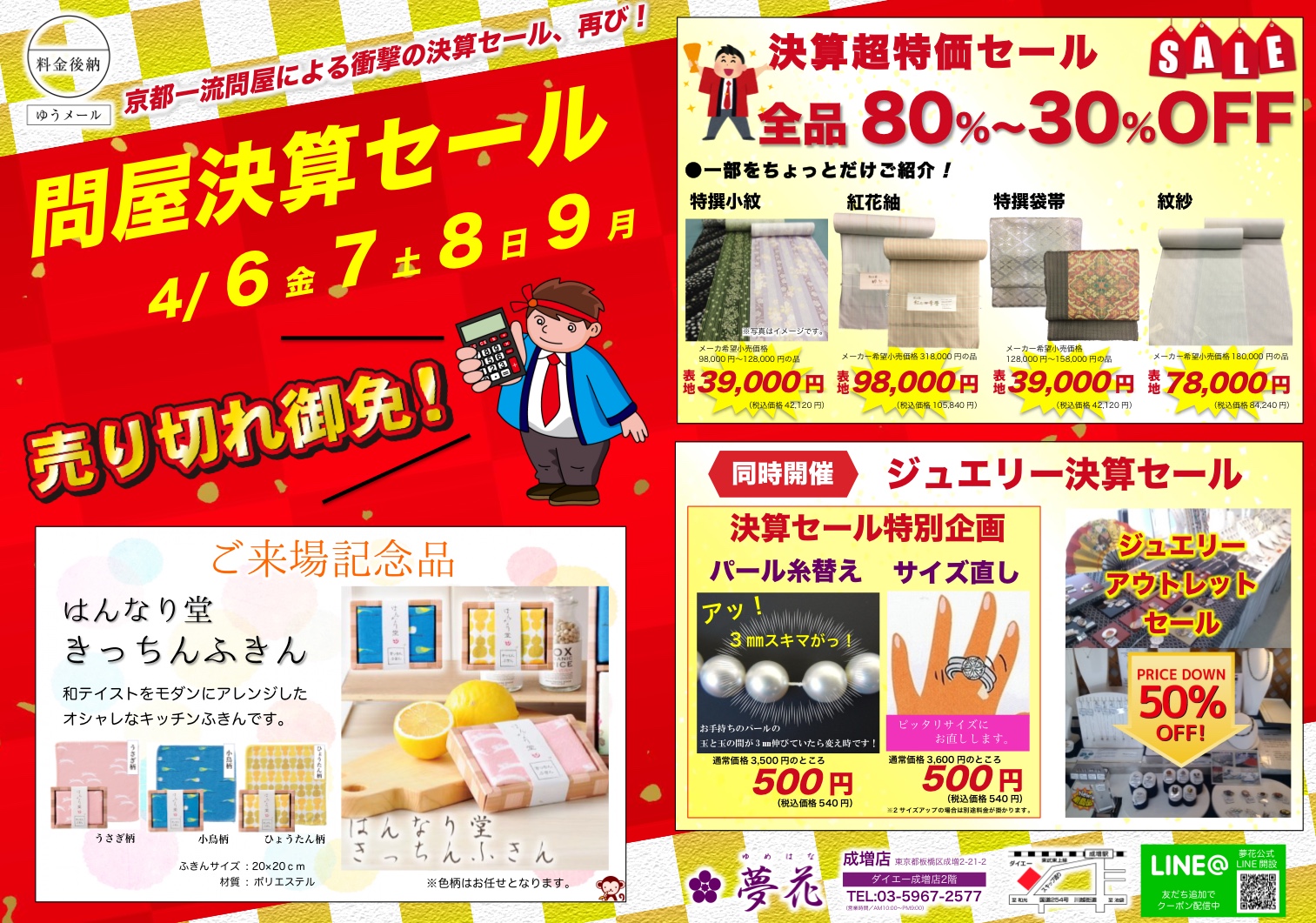 4月6日(金)~9日(月)より成増店内で行われます、問屋決算セールに特別来場いたします!!