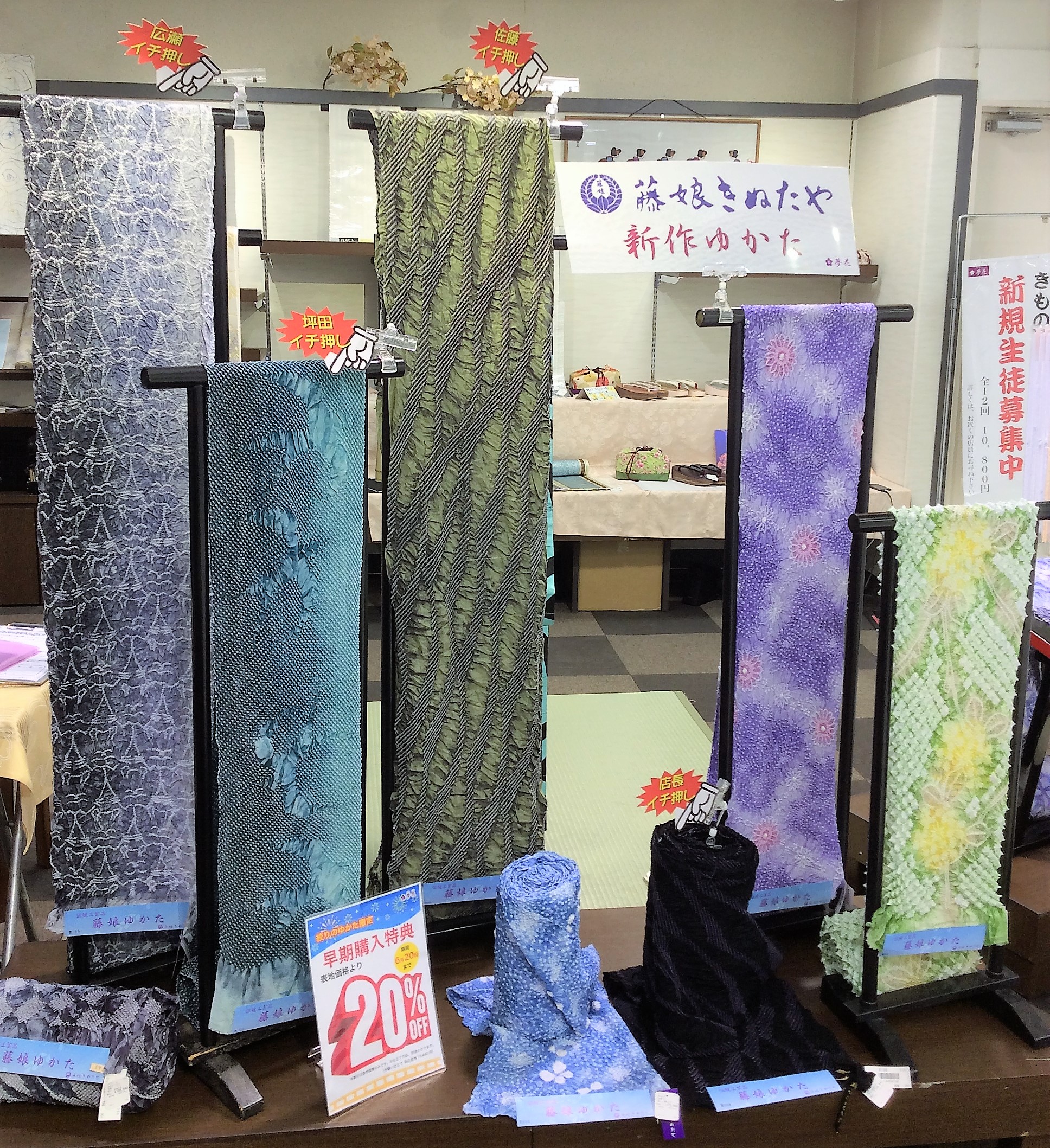 絞りの浴衣につては勿論のこと、絞りの着物に関しても、きぬたやの製品担当者から直にお話を聞くとことができる特別な機会です。