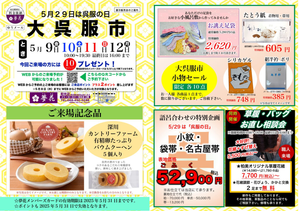 2025年5月9日(金)~12日(月)の4日間、「大呉服市」を夢花和光店で開催いたします。